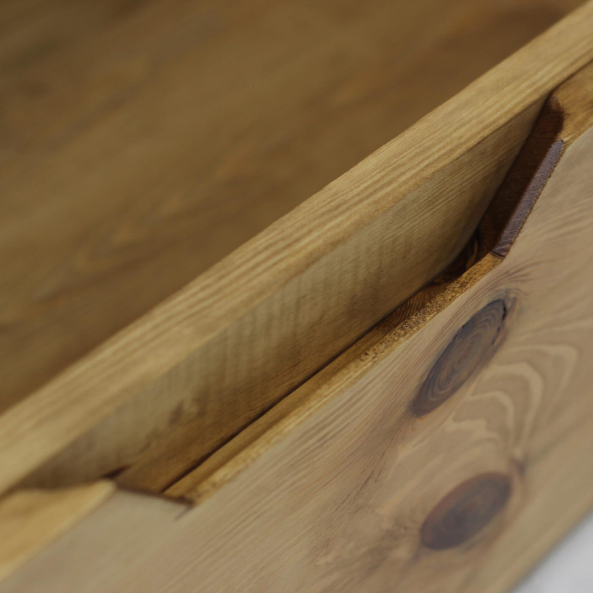 Łóżko Sumatra z szufladami to solidna, prosta forma z litego drewna, zaprojektowana tak, aby maksymalnie wykorzystać przestrzeń w sypialni. Wysoki, gładki zagłówek z poziomym układem słojów nadaje konstrukcji spokojny, naturalny charakter. Zabudowana podstawa mieści praktyczne szuflady, które płynnie wysuwają się na prowadnicach – idealne na pościel, koce czy sezonowe rzeczy.