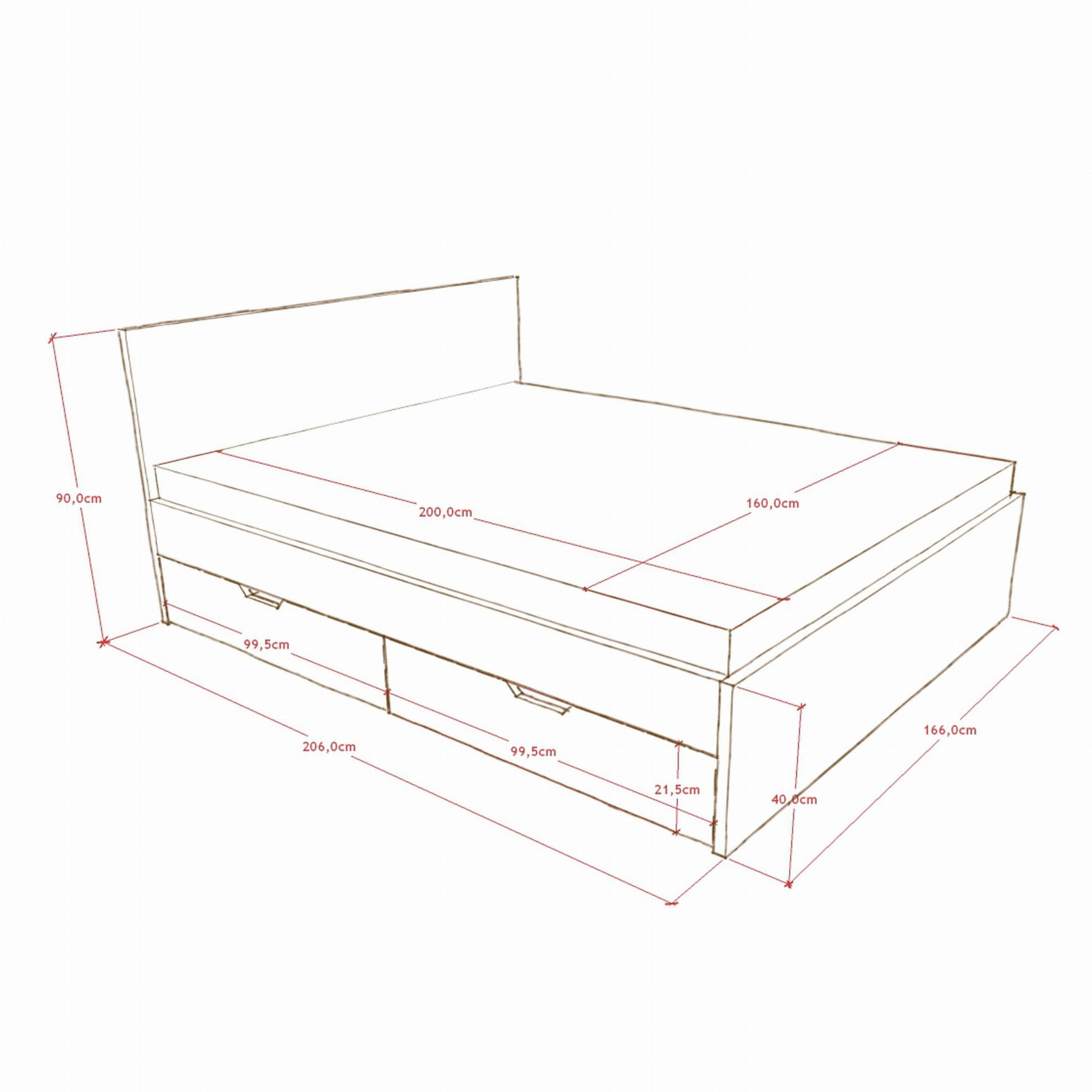 140×200 i większe — 4 szuflady (po dwie na każdą stronę)